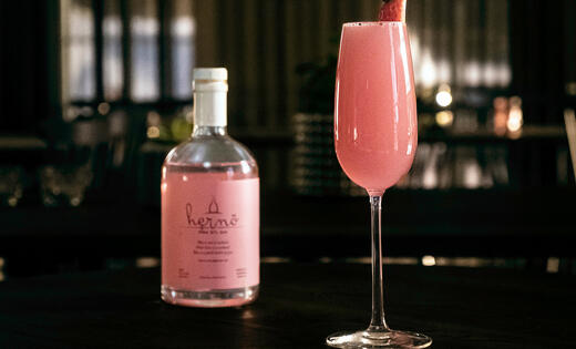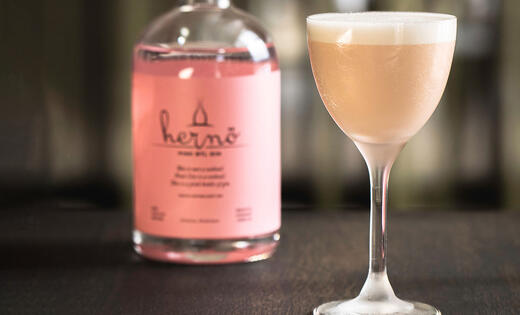 1. Häll Hernö Gin, citronjuice, hallon-sockerlag och äggvita i en shaker. Skaka utan is för att få ett skum.