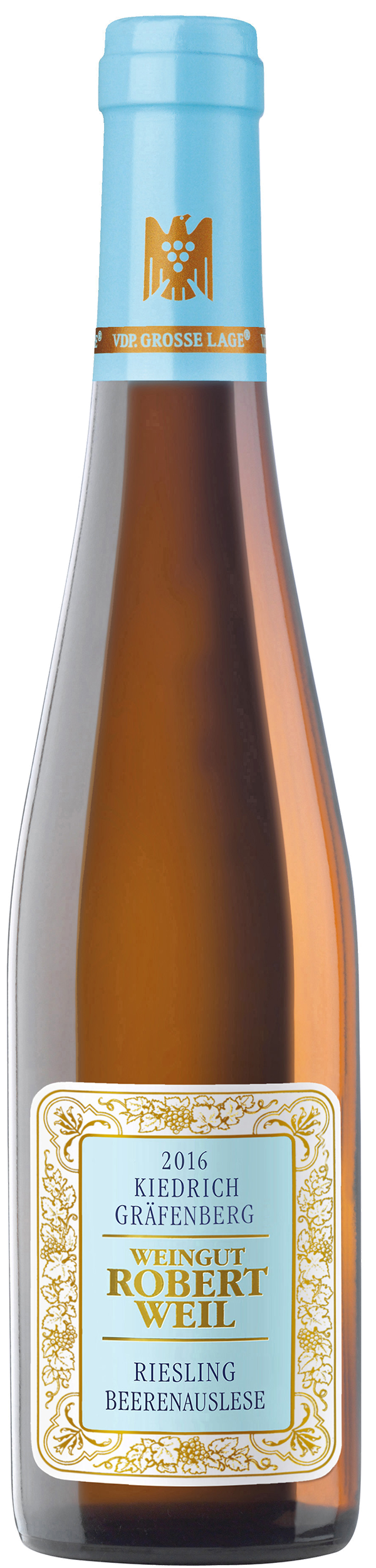 Robert Weil Kiedrich Gräfenberg Riesling Beerenauslese har en doft som verkligen breder ut sig. En bukett av aprikos, hjortron, persika, gula päron, blöt skiffer och vita blommor. Smaken är söt, men balanseras på bästa sätt med en knivskarp syra. I den nyansrika smaken finner man både aprikos, hjortron, persika, citron och gula päron, Både balans, intensitet och smaklängd är av absolut högsta klass.