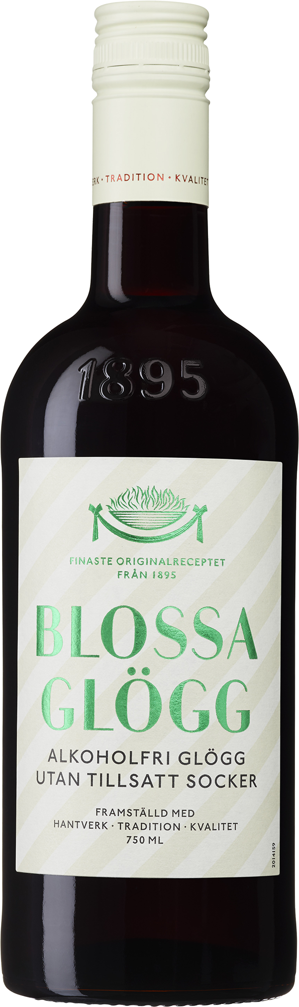 Blossas röda glögg utan tillsatt socker görs på ett avalkoholiserat fylligt rött vin som blandats med druvmust och Blossas lagrade kryddor. Glöggen är sötad med stevia, vilket ger en lite torrare upplevelse. Den har en julig doft och en rik smak av kryddnejlika, kardemumma och ingefära. Innehåller ca 50 g socker/liter (klassisk Blossa alkoholfri glögg innehåller 180 g socker/liter).
