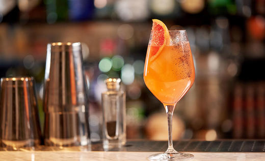 I Gin & Pink Grapefruit hittar du en bra gin från Hernö, en bitter och tonicvatten med smak av grapefrukt. En härligt frisk drink med bett.