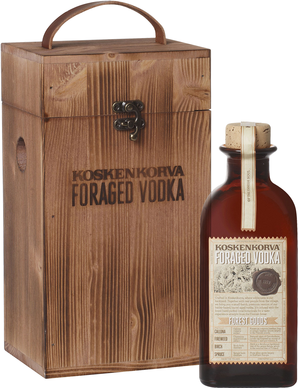 Koskenkorva Foraged Vodka är en lagrad vodka gjord uteslutande på korn från Koskenkorva som smaksatts med de handplockade växterna; ljung, mjölkört, björk och tall som noggrant valts ut för att ge vodkan den bästa smaken av ört och skogsnoter. Sedan följer minst 6 månaders fatlagring i fat av fransk, amerikansk och svensk ek.