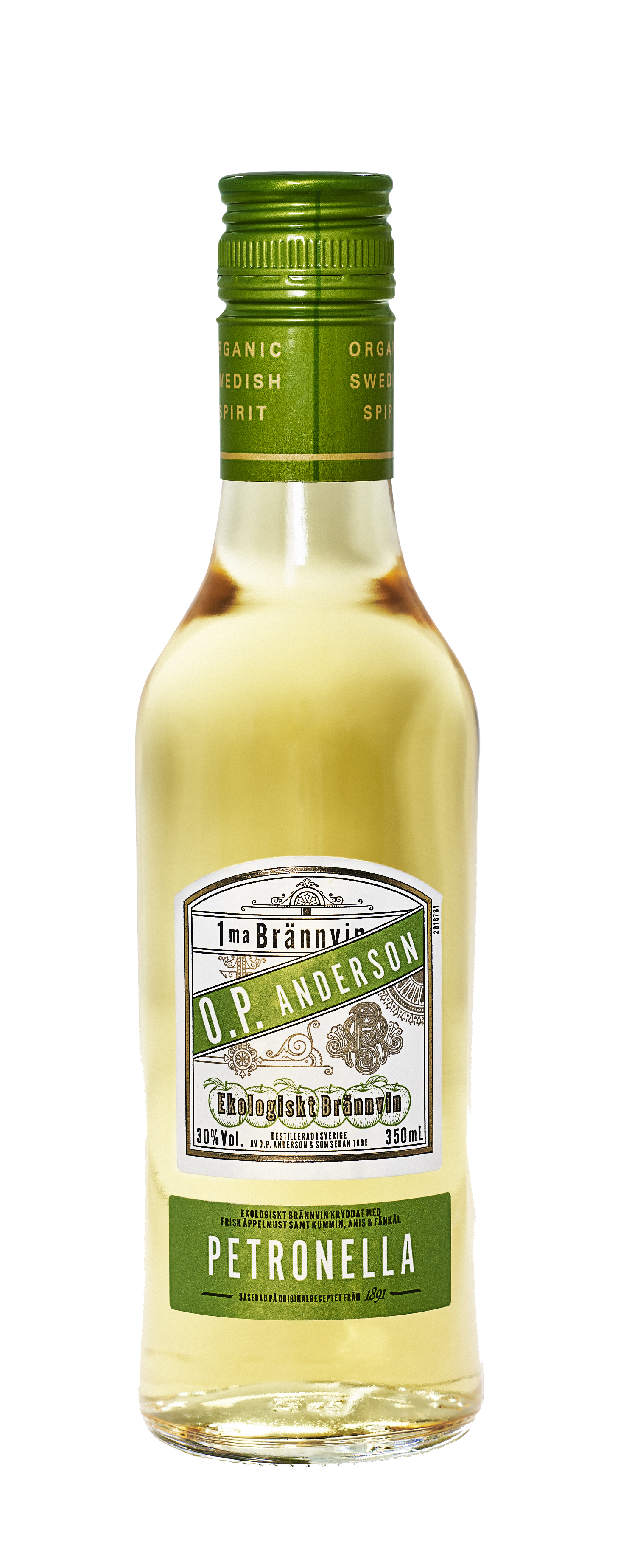 Den ekologiska O.P. Anderson Petronella Äpple & Kummin är framtagen för att erbjuda ett mildare och alkoholsvagare alternativ till traditionell aquavit. Den tydliga kryddningen av kummin är avrundad med äppelmust som ger en fruktig och frisk snaps. Lätt kyld passar den utmärkt till många av sommarbordets läckerheter och är helt fantastisk i cocktails.