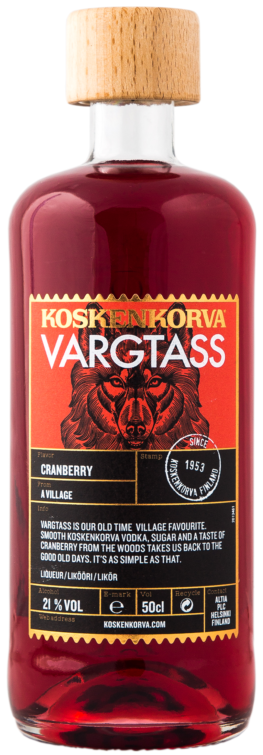 Koskenkorva Vargtass har en perfekt balans mellan surt och sött med tydlig smak och doft av tranbär och lingon.