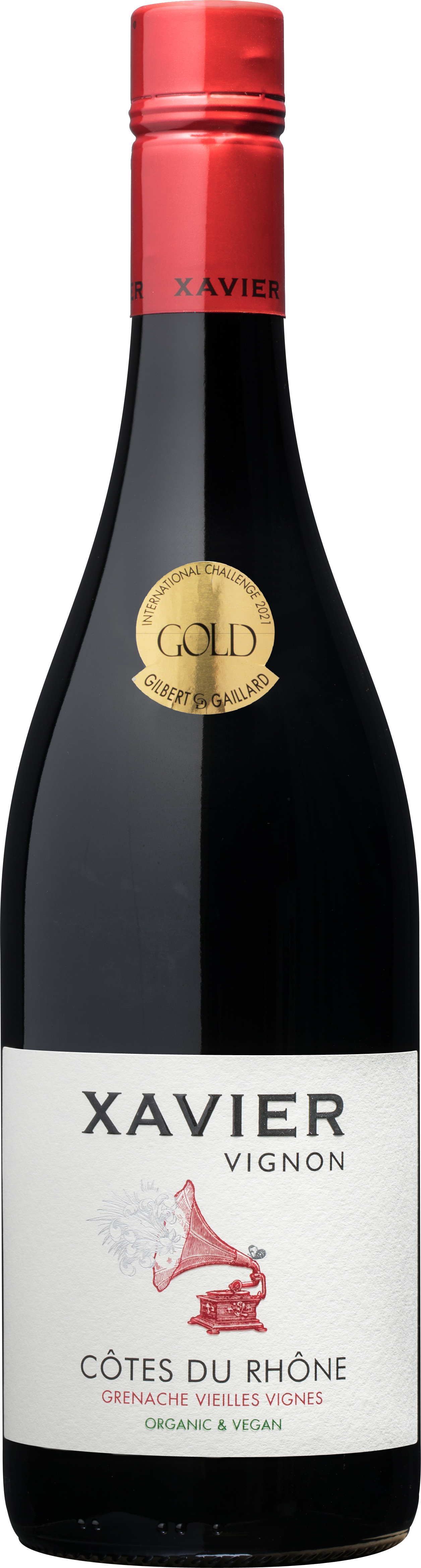 Xavier Vignon Côtes-du-Rhône Grenache Vieilles Vignes Organic har en inbjudande doft som för tankarna till skogshallon, mörka bär peppar, och torkade örter. Smaken är mjuk, fruktig och kryddig i en härlig symbios. Det finns nyanser av hallon, björnbär, färska örter svart te och lavendel