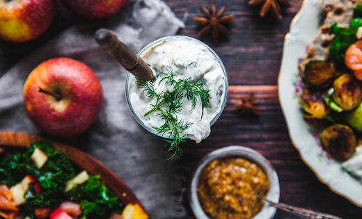 Till snapsen ska det såklart vara sill. Här har jag gjort en sillröra som har härlig smak av senap. Vilket passar ypperligt till O.P Andersson Julaquavit!