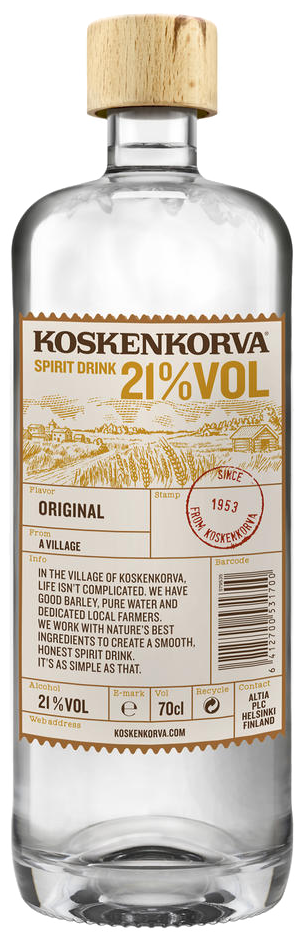 Koskenkorva 21 % har en torr och kornig smak med en ren och neutral doft. Avnjut som den är eller ha i drinkar.