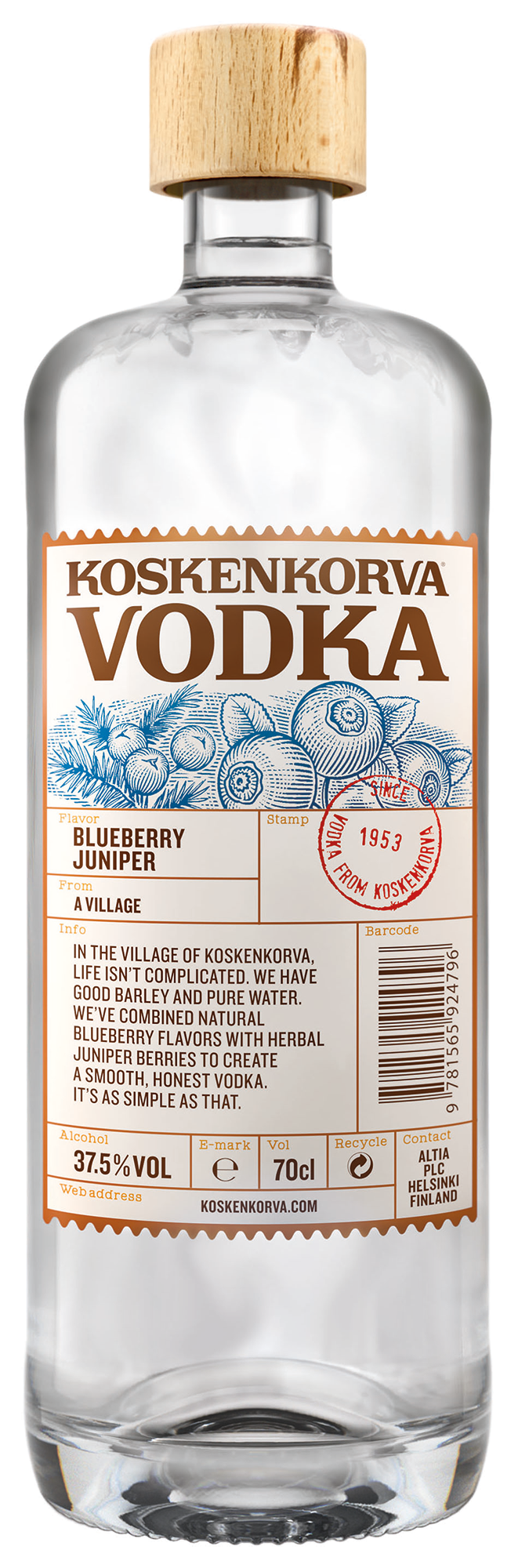 Basen i denna smaksatta vodka är Koskenkorva vodka som smaksätts med naturlig blåbärsarom och enbär för att skapa en trevligt balanserad Nordisk smak.