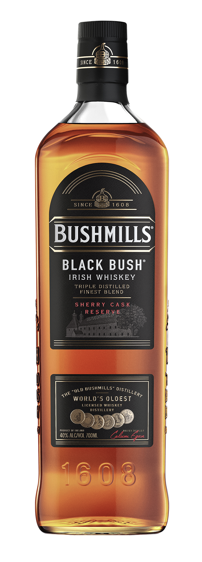 Black Bush är en klassisk barfavorit från detta anrika destilleri. Bushmills Black Bush är en av världens mest kända irländska whiskeysorter. Den blandas av en påtagligt stor andel, 80 %, åtta- till tioårig sherryfats lagrad malt whisky (oloroso) och 20 % grainwhisky från i åldrar ända upp till 18 år. Bushmills Black Bush brukar rankas som en av världens bästa blendwhiskeys.