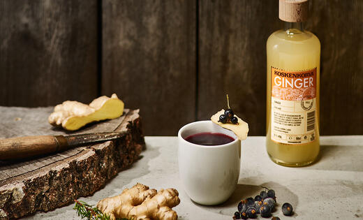 Koskenkorva Ginger har en krispig doft med inslag av frisk ingefära och toner av citrus. Smaken är söt men fräsch med en stark kryddig ton av ingefära. Lätt och friskt brännande eftersmak som bärs upp av den goda ingefäran. Lika god shot och drinkingrediens.